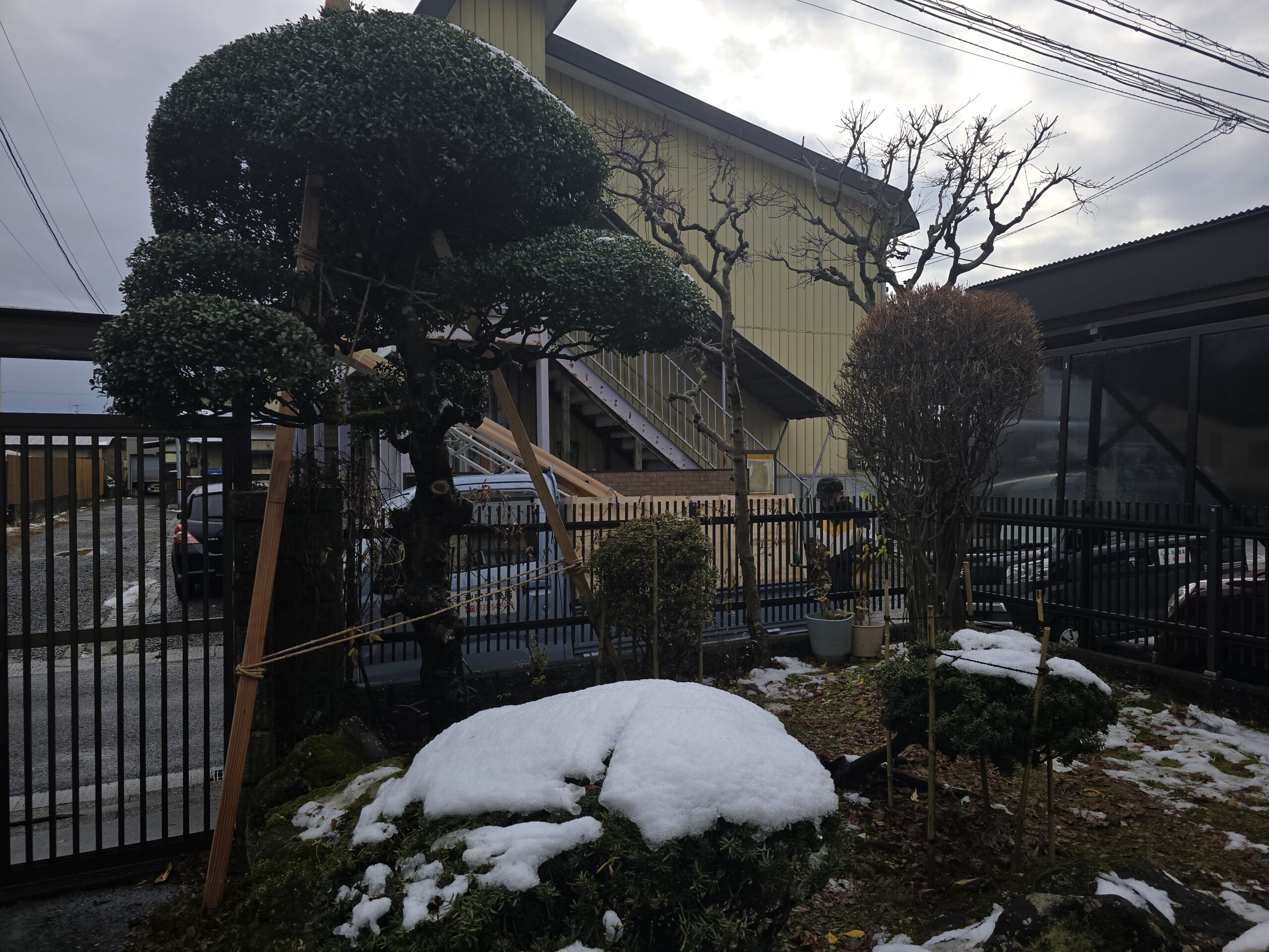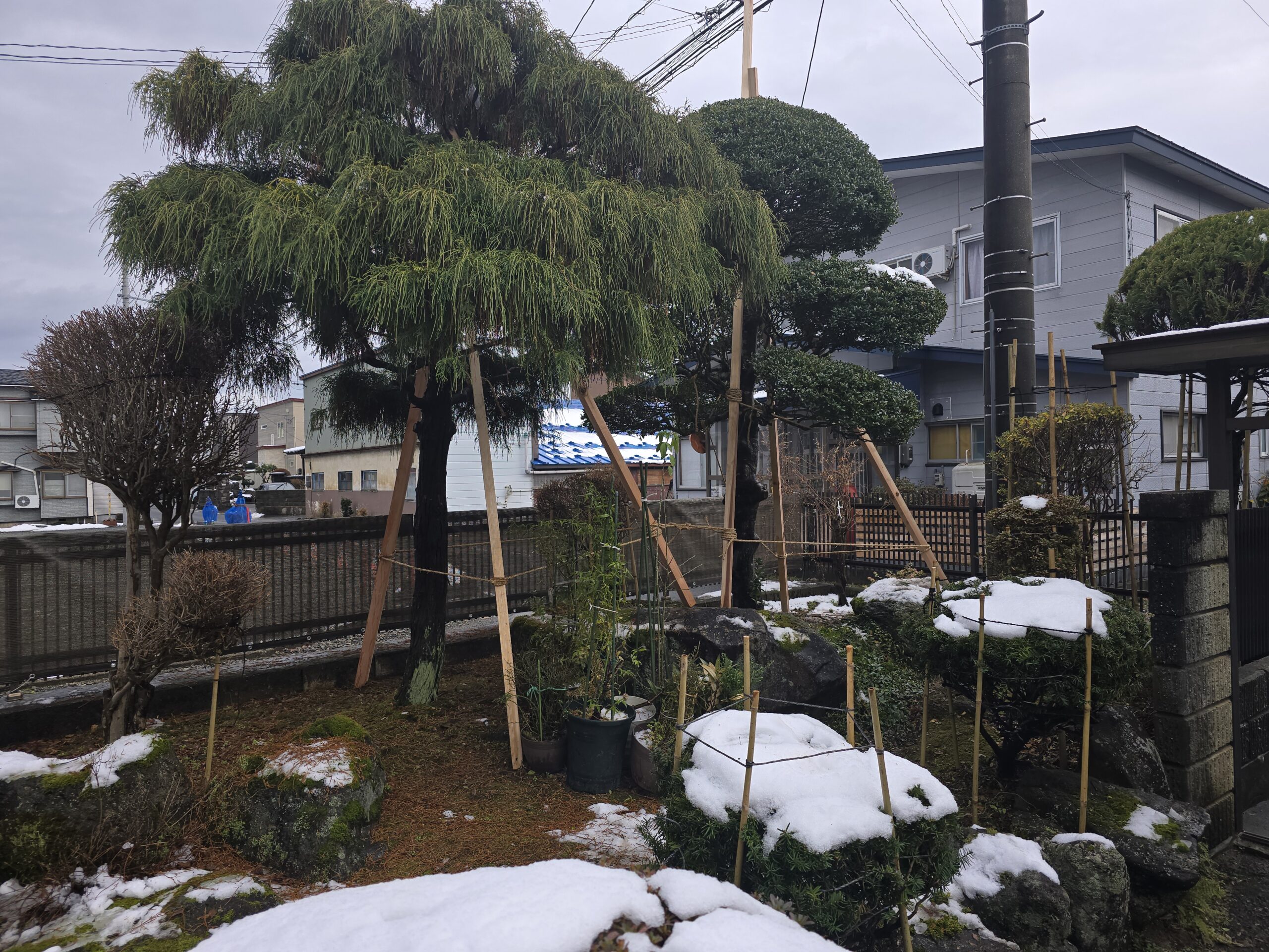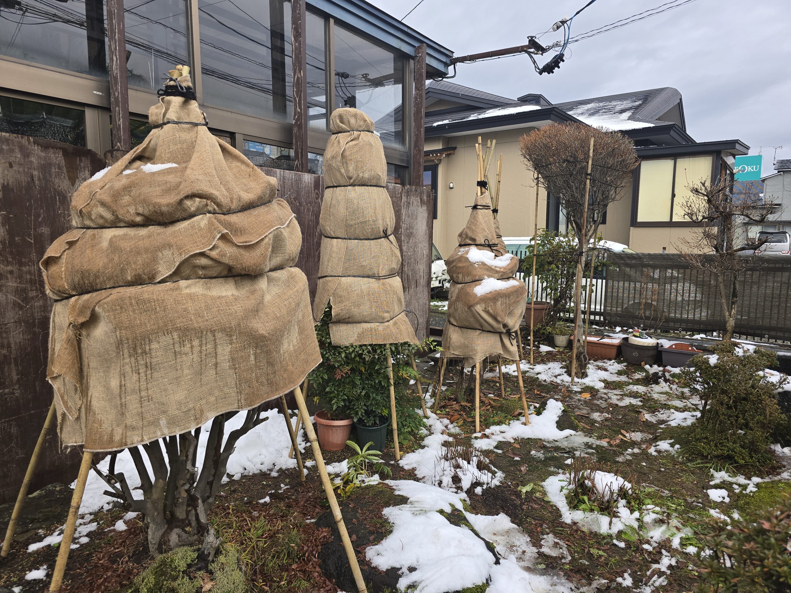 簡単な用で実は奥が深い冬囲い、雪害予防はもちろんですが、見栄えも重要なポイント。